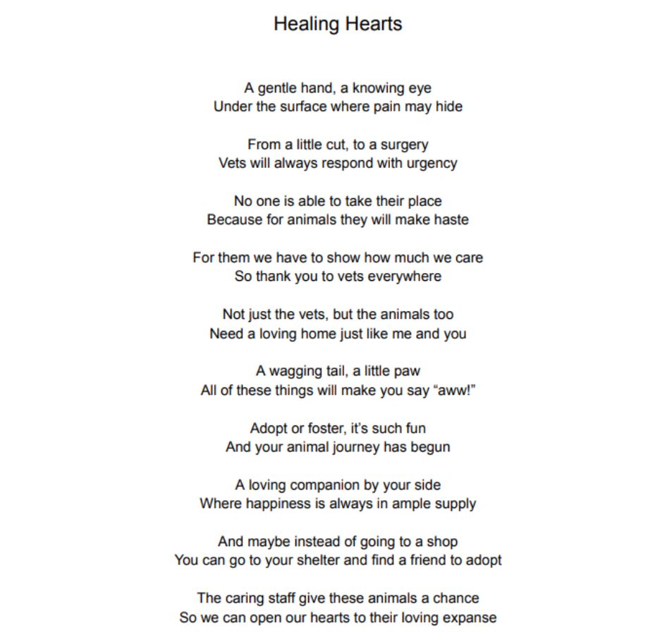 - Creativity and Originality (All entries) All entries must be an original creation and cannot be copied or traced from someone else’s work. Show or tell us what we can do to help the animals in our community.