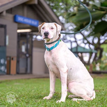 Say aloha to Keo, a 5-year-old, 60 lb sweetheart who was found as a stray in Kane?ohe and is now ready for a fresh start. Keo is a handsome, strong boy with impressive muscles and a sturdy build, but don’t let that fool you. He has a gentle, loving nature and truly enjoys human companionship. Keo would do great with someone who appreciates an active dog with strength and presence, but also a soft side. He’s the kind of pup who will happily walk by your side and then relax with you after. If you’re looking for a loyal, sweet, and solid companion, Keo might just be the perfect match for you. Come meet this handsome boy at our Mo'ili'ili campus and see his charm for yourself!