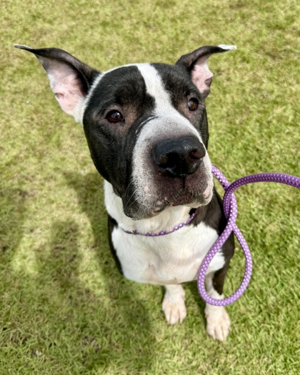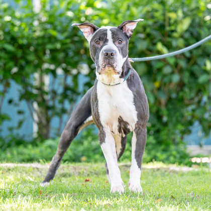 Kobe is a 60-pound senior American Pit Bull with a big personality and an even bigger heart, ready to bring joy and companionship to his next family. Friendly, goofy, and full of life, he greets people with happy tail wags and loves soaking up attention once he settles in. Kobe enjoys getting out to explore the world on leash, following his nose on sniffing adventures, and showing off the skills he’s learned along the way. He’s made wonderful progress with structure and positive guidance, and he truly thrives when he can connect with his people. Kobe has lived with other dogs before and enjoys playful company, but he’d do best in a home without cats or small animals. If you’re looking for a loyal companion with a fun spirit and so much love to share, come meet Kobe at the Kosasa Family Campus in Ewa Beach.