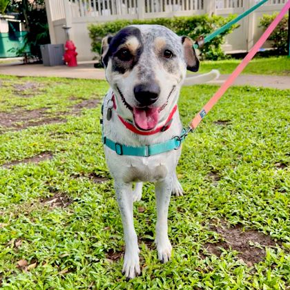 Meet Mochi! This beautiful one-year-old mixed breed girl is as unique as her coat. With her striking speckled coat, soulful eyes, and adorable black “mask,” Mochi is sure to turn heads wherever she goes. She’s curious, smart, and full of personality — the kind of companion who’ll bring a little extra sparkle to your days. Mochi would do best in a home without cats or small animals, as her playful energy can sometimes be a bit too much for them. She appreciates slow introductions when meeting new friends and thrives when given time and patience to build trust. Once she knows you’re part of her pack, she’s loyal, affectionate, and full of love to give. If you’re looking for a stunning, spirited young dog ready to grow and learn alongside you, Mochi might just be your perfect match!