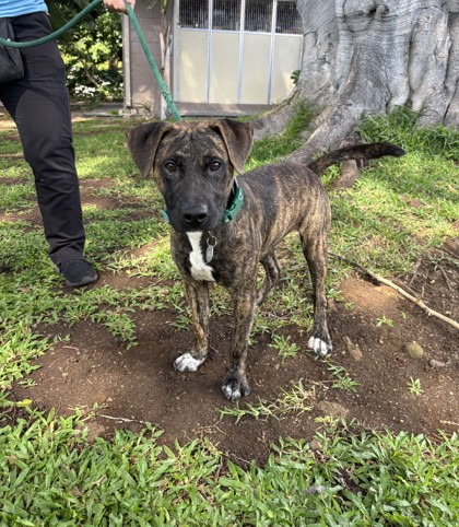 This handsome brindle boy is full of energy, charm, and personality! Kai Borg is always ready for an adventure, whether it’s a walk, a game of fetch, or just showing off his adorable wiggle butt when he’s happy. His playful spirit is contagious, and he’s sure to bring smiles wherever he goes. If you would like to meet him, please visit our Mo‘ili‘ili campus and see how amazing he is!
