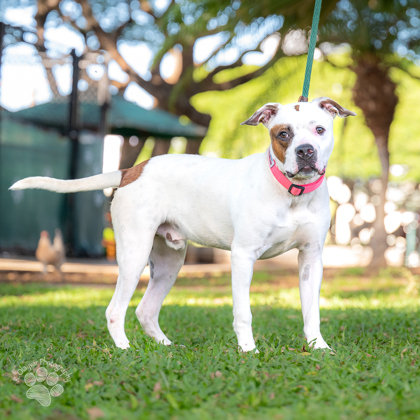 Meet Panda, a one year old terrier pitbull mix and a charming stray from Kaneohe near Windward Mall. This adorable boy got his name thanks to the super cute spot over one eye that makes him look like a real life panda pup. Panda is friendly, curious, and ready to start fresh with a family who will give him the love and guidance he’s been missing. He’s young, eager to learn, and full of that joyful energy that makes every day a little brighter. If you’re looking for a lovable companion with tons of personality (and the cutest face around), come meet Panda at our Mo'ili'ili campus and let him melt your heart!