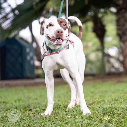Meet Hapa! This cute little white-and-brown lover boy is just starting out in life and still learning the ropes! Like many young dogs, Hapa will need plenty of attention, training, and patience as he grows and figures out the world around him. Hapa is a strong and energetic boy with lots of enthusiasm for life. He’ll do best with an active family that’s ready to help guide him with positive training, playtime, and structure. With the right support, this handsome pup has the potential to grow into an amazing lifelong companion. If you’re ready to invest the time and love a young pup needs, Hapa could be the perfect addition to your family. Come meet him at our Mo'ili'ili campus today!