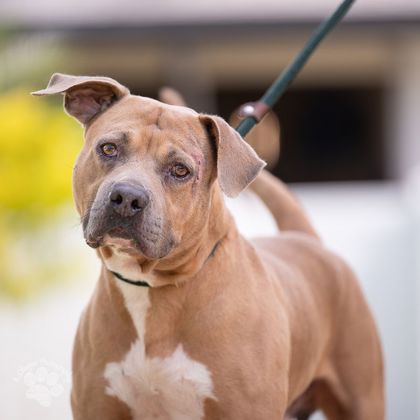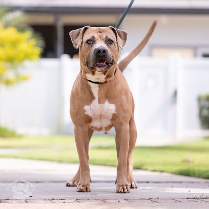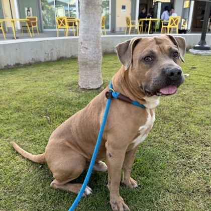 Willis is a big, lovable American Pit Bull Terrier mix with a friendly, easygoing nature and a heart to match his size. At just over 70 pounds, this 3-year-old boy is affectionate, treat-motivated, and loves being around people, happily accepting petting all over with a loose, wiggly body and wagging tail. He’s also shown positive, playful interest in other dogs, greeting them with soft body language, play bows, and friendly curiosity. Willis does have some strength on leash and will benefit from a harness setup, but with his eagerness to connect and learn, he’s a great candidate for continued training and adventures. If you’re looking for a social, happy companion with a big personality and an even bigger heart, come meet Willis at the Kosasa Family Campus in Ewa Beach.