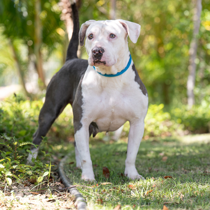 Rosie is a beautiful adult pitbull with a heart just as big as her bright, happy smile. With her striking two-tone coat, soft expressive eyes, and adorable freckled nose, she’s the kind of dog who turns heads—and then melts hearts the moment you meet her. Rosie is incredibly affectionate and thrives on love and attention; she’s happiest right by your side, soaking up pets and leaning in for more. Sweet, gentle, and full of warmth, she has that easygoing charm that makes her a joy to be around. If you’re looking for a loyal companion who will shower you with love every day, Rosie is ready to be your girl. Come meet Rosie at our Kosasa Family Campus in Ewa Beach!