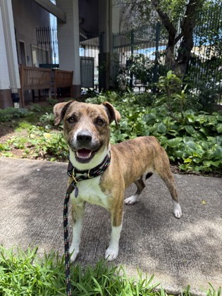 Meet Roland! Roland is a handsome brindle boy with a gentle heart and a soft, sweet nature. He can be a little shy at first, but underneath that quiet exterior is a dog who absolutely loves affection and just wants to be close to his people. He’s currently learning how to walk on a leash and is making great progress, especially when treats are involved—those are definitely his love language! With a little patience and encouragement, Roland will continue to build confidence and blossom. Once he feels safe, Roland is all about the cuddles. He’s the kind of dog who will happily curl up next to you and soak in all the love you have to give. Roland is looking for a kind, patient home that will help him come out of his shell and show him the world isn’t so scary. In return, you’ll get a loyal, loving companion who just wants to be by your side. Could Roland be your new cuddle buddy? Come meet him today at the Mo'ili'ili campus today!